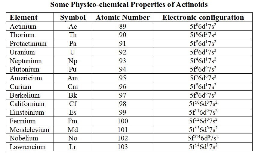 The chemistry of actinoids is more complicated due to the existence of greater range of oxidation states for these metals. Moreover, all these metals are radioactive and therefore, their accessibility for laboratory investigations is limited. The elements beyond uranium are all man made elements and are made by nuclear-chemical methods. Some of the physico-chernical proper ties of actinoids are discussed as follows.