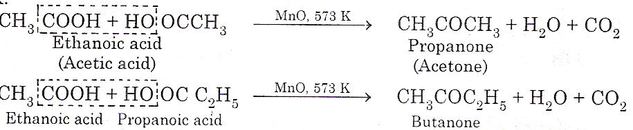Ketones can be prepared by passing the vapours of fatty acids (other than methanoic acids) over MnO2 at 300ºc.