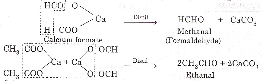 Aldehydes and ketones can also be prepared by distilling the calcium salts of the acids. e.g.