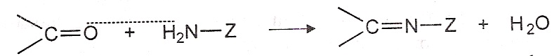 5) Reaction with ammonia derivatives: Ammonia derivatives (NH2-Z) react with aldehydes and ketones to form compounds containing carbon-nitrogen double bond, together with the elimination of a water molecule.
