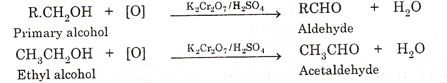 1) From alcohols: Aldehydes can be prepared by the oxidation of primary alcohols with mild oxidizing agent such as potassium dichromate and potassium permanganate and sulphuric acid.