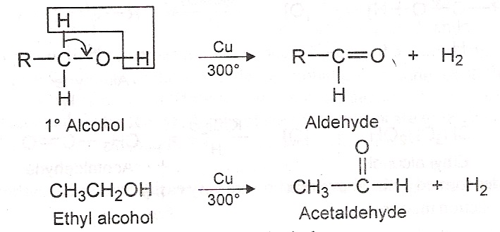 2) Catalytic dehydrogenation of alcohols: Aldehydes may be prepared by passing the vapour of primary alcohols over a copper catalyst heated to about 300ºC.