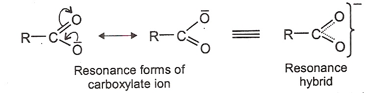 Acidity of carboxylic acids: Carboxylic in acidic in nature because the carboxylate ion formed by ionization or reaction with a base is stabilized by resonance.