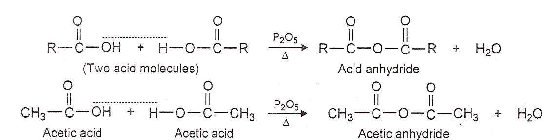 5) Formation of anhydrides: Carboxylic undergo dehydration with phosphorus pentaoxide (P2O5) to form acid anhydrides.