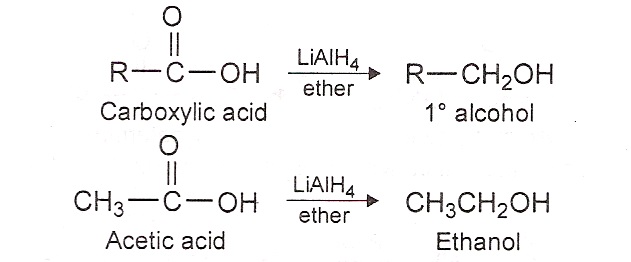 6) Reduction: Carboxylic acid undergoes reduction with lithium aluminium hydride to give primary alcohols.