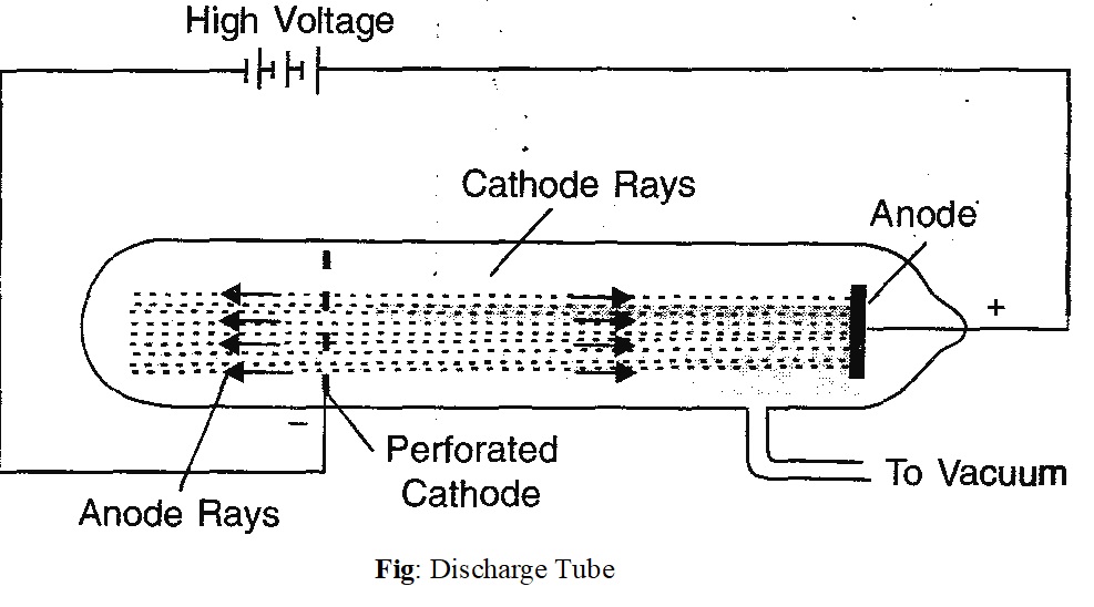 In 1886, Eugen Goldstein used a discharge tube with a hole in the cathode. He observed that while cathode rays were streaming away from the cathode, there were coloured rays produced simultaneously which passed through the perforated cathode and caused a glow on the wall opposite to the anode. Thomson studied these rays and showed that they consisted of particles carrying a positive charge. He called them positive rays.