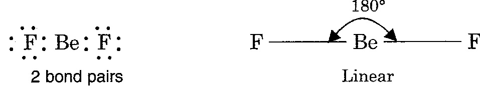 If the central atom of a molecule is surrounded by only bonding electron pairs and not by non-bonding electron pairs, called lone pairs, the geometry of the molecule will be regular i.e. linear (BeF2), triangular planar (BF3), tetrahedral (CH4), trigonal bipyramidal (Pcl5), octahedral (SF6) for 2, 3, 4, 5 and 6 bonding electron pairs. For example,