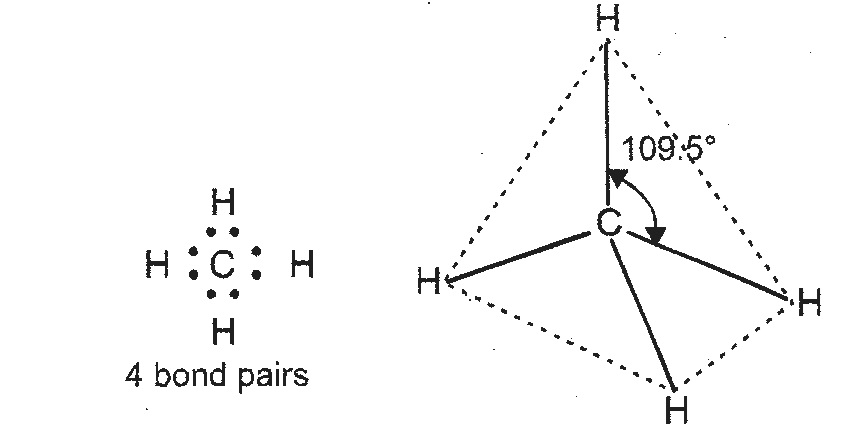 iii) Molecules with four bond pairs around the central atom have tetrahedral geometry.