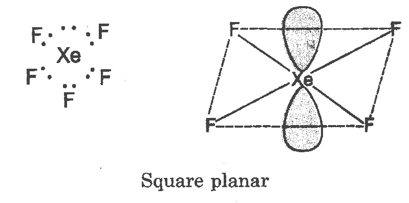 iii) Molecules with four bond pairs and two lone pairs around the central atom have square planar geometry. e.g. XeF4, [Ni (CN)4]2-, etc.
