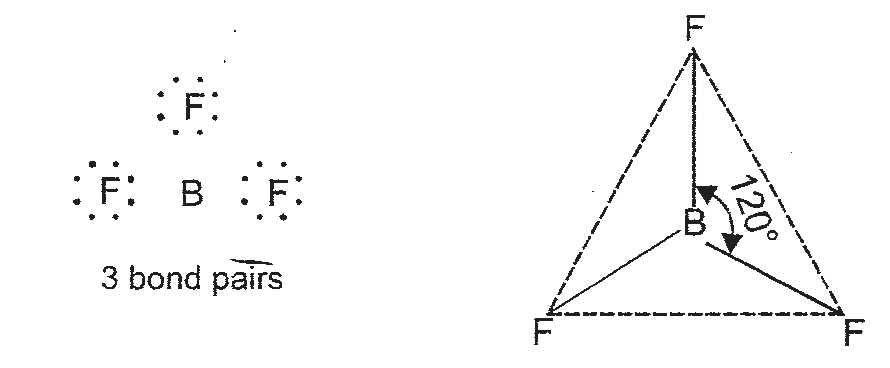 ii) Molecules with three bond pairs around the central atom have triangular planar geometry