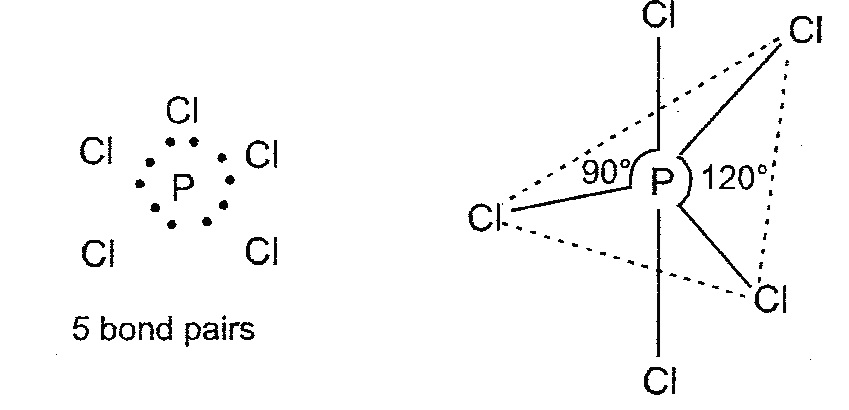 iv) Molecules with five bond pairs around the central atom have trigonal bipyramidal geometry.