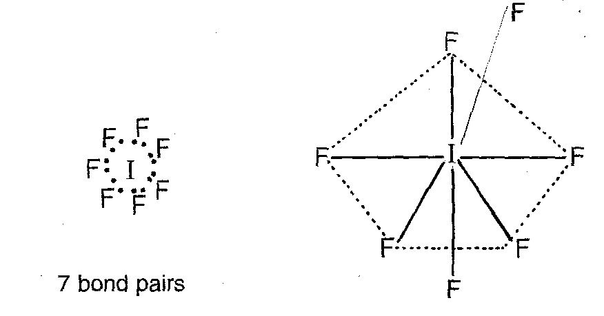 vi) Molecules with seven bond pairs around the central atom have pentagonal bipyramidal geometry.