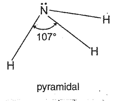 i) Molecules with three bond pairs and one lone pairs around the central atom, has a triangular pyramidal geometry. E.g. NH3, Pcl3, H3O+-ion, etc.