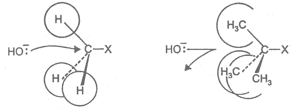 - The tertiary alkyl halides undergo substitution by SN1 mechanism. This is because the attack of the nucleophile on the crowded tertiary alkyl halide is quite difficult.