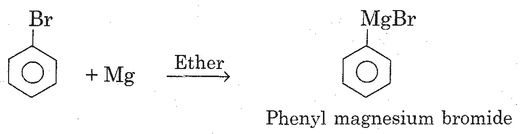 Like alkyl halides, aryl bromides and iodides also reacts with magnesium in dry ether to form Grignard reagent.