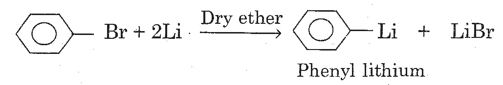 Bromo and iodoarenes reacts with lithium metal in the presence of dry ether to form corresponding organometallic compounds.