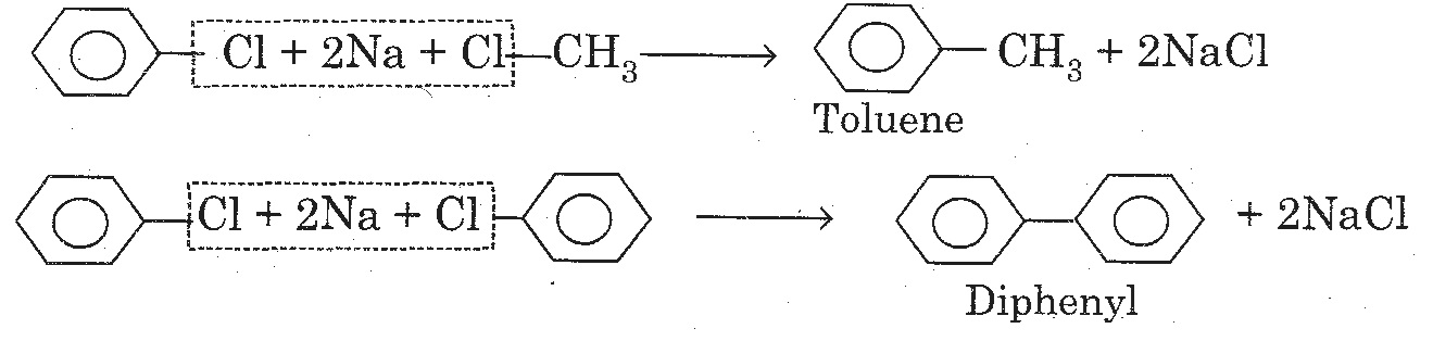 When aryl halide is heated with alkyl halide in presence of sodium & ether, halogen atom is replaced by alkyl group. This reaction is called Wurtz Fitting reaction.