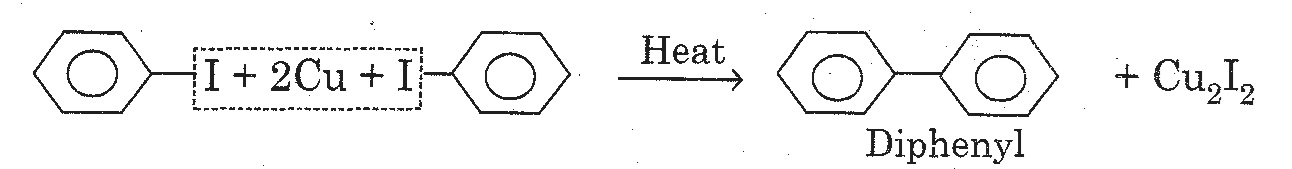 Iodobenzene when heated with Cu powder in a sealed tube, it gives diphenyl. This reaction is called Ullmann reaction.