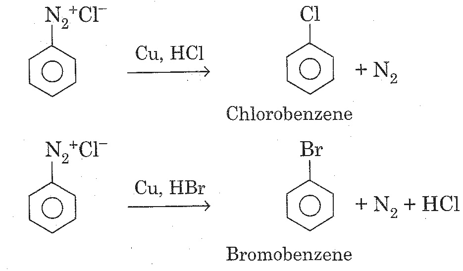 The Sandmeyer reaction has been modified by using copper powder in the presence of corresponding halogen acid (HCl, HBr) in place of cuprous halide (CuCl, CuBr). The modified reaction is called Gattermann reaction.